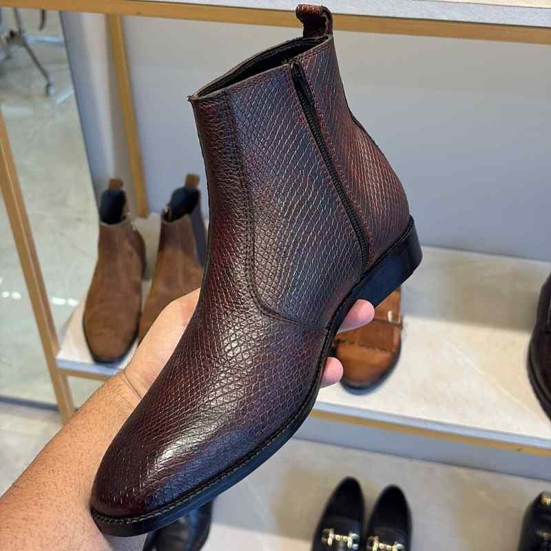 Brown Lizard Texture Italian Leather Boots
